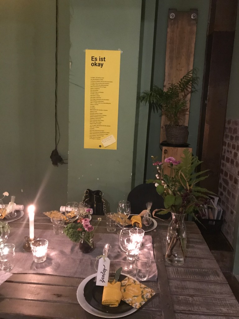 Was ist eigentlich ein Supperclub? Komisch, ich habe mich das erst nach der Veranstaltung gefragt, vorher hat mich einfach der Klang des Wortes fasziniert und Lust gemacht und zudem ist die Gastgeberin eine mir liebgewonnene Freundin. Ein Mensch, wo man einfach weiß, was sie in die Hände nimmt, kann nur gut werden. Also schau einfach, wen willst du mitnehmen, wer begleitet dich (also mich) auf dieses ungewohnte Terrain… Aber zurück zur Frage nach dem Supperclub. Bist du ein leidenschaftlicher Hobbykoch und möchtest gern ab und an deine Kochkünste ausleben und bist zudem noch ein guter Gastgeber, dann kannst du mit einem Supperclub in einer passenden Location deiner Wahl(schon eher private Räume) einen schönen Event daraus machen. Das besondere ist, man lädt dazu Fremde ein. Oder man erweitert das Ganze und nennt es „Kochen und Freunde“.