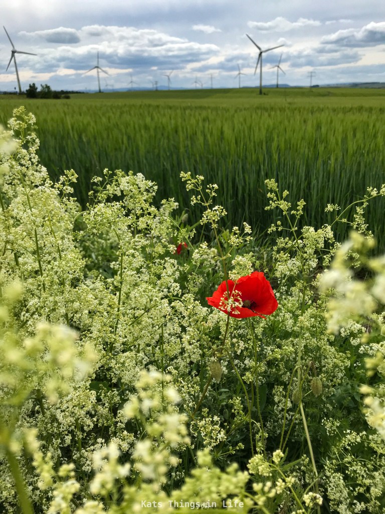 Betrachten wir speziell das Thema Mohnblumen. Einmal irgendwo gesehen, dieser schöne Kontrast des Rot der zarten sehr vergänglichen Pflanze, ist sofort das Jagdfieber geweckt. Bei mir ist der Wunsch dann so groß, Fotos davon zu schießen, diese kurze Zeit festzuhalten, dass ich möglichst schnell dieses Verlangen stillen muss. Mein Mann kann diese Sache mit den Blumen nicht so richtig verstehen, zumal auch von diesem Motiv aus den vergangenen Jahren sicher an die hundert Pics zusammen kommen würden. Mir fiel keine richtig gute Erklärung ein, nur dass ich es einfach wahrhaftig erleben muss, sehen muss, den Wind drumrum erleben muss, damit ich nach dem „erledigen“ des Fotografiervorgangs an sich zufrieden bin. Selbst erlegt sozusagen. Oder für musikliebende Männer: als ob da ne Wiese mit Schallplatten stünde, wo man jede einzelne anhören kann. Wer würde da nicht innehalten zum genießen und dies immer wieder?