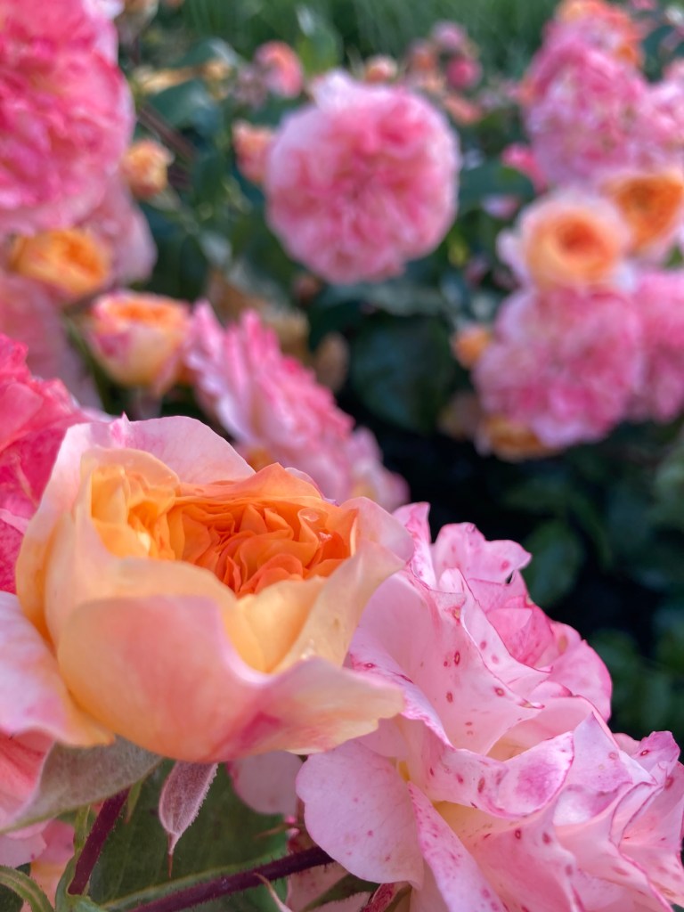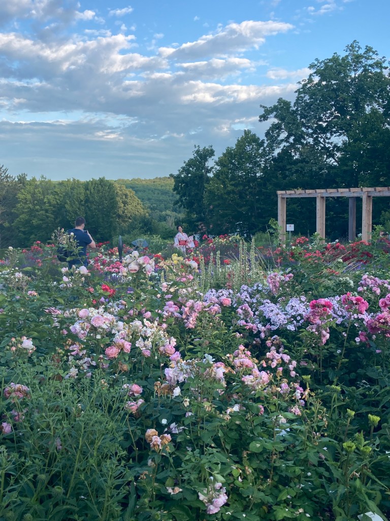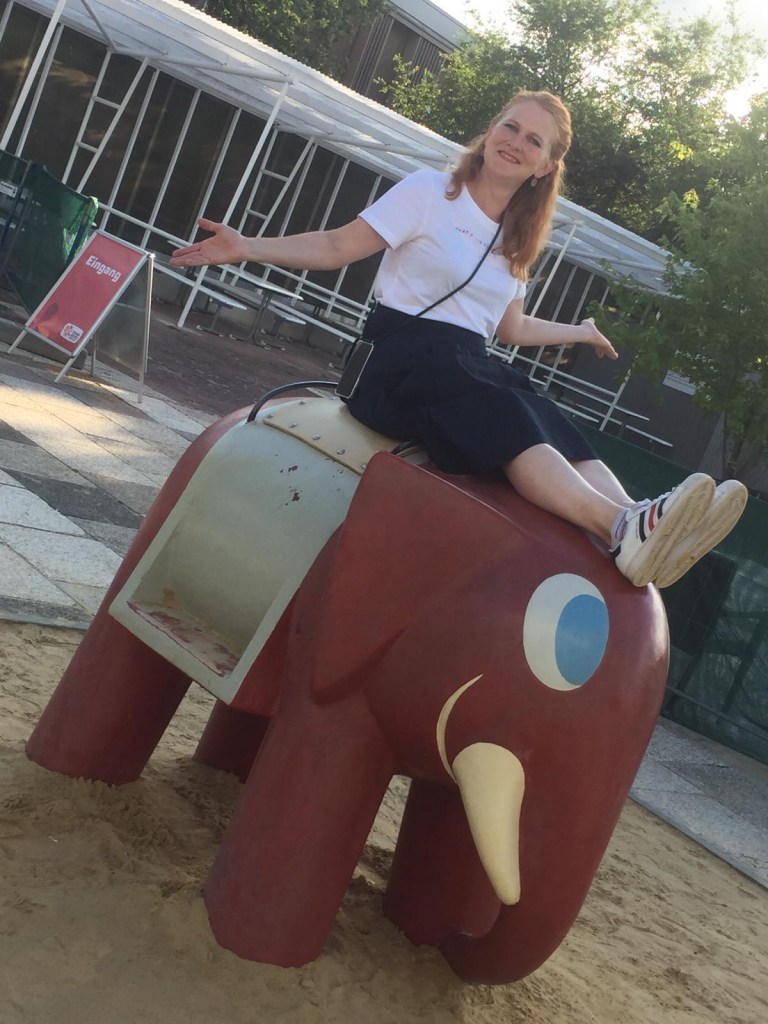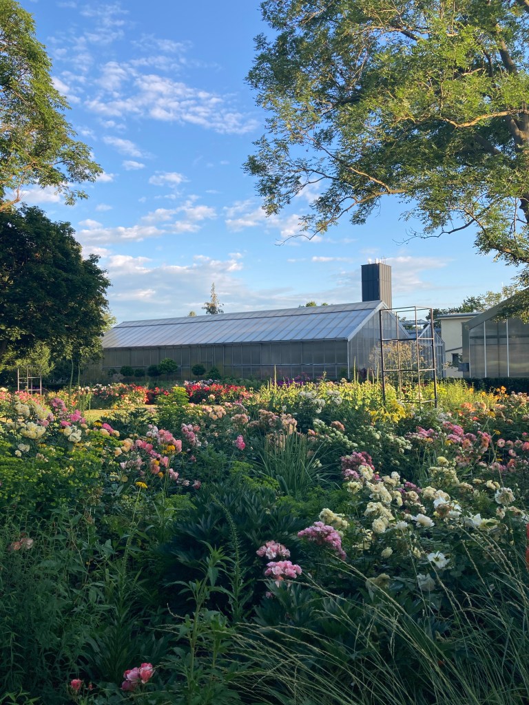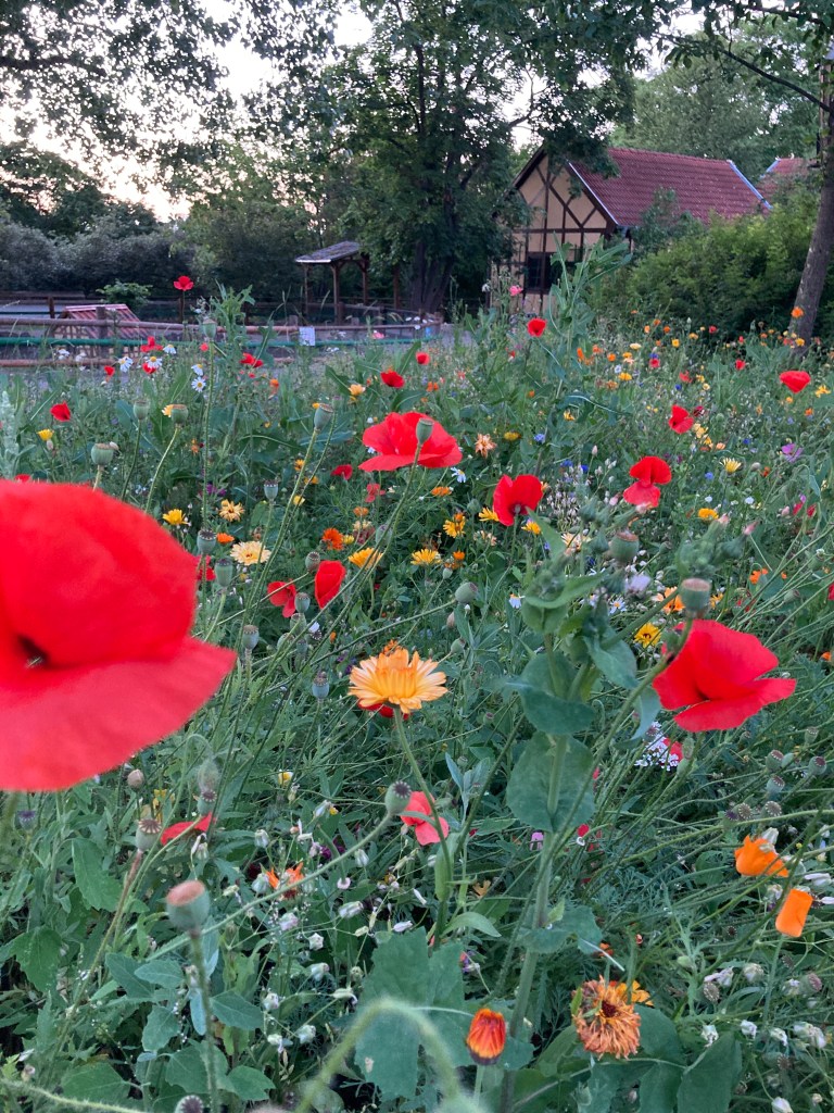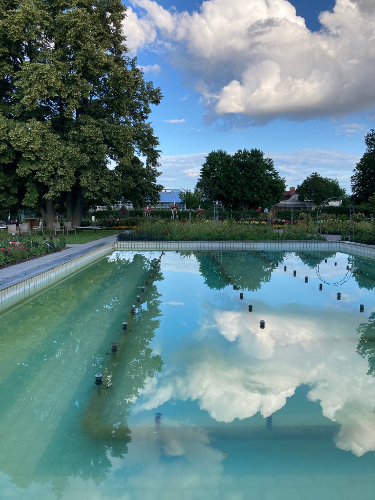 Wir legen uns ein bisschen auf die Wiese im Rosengarten und genießen die Schönheit um uns herum. Eben haben wir noch beobachtet, wie ein Fotograf in spe seine oder eine Geisha inmitten der Rosenblüten ablichtete. Wenn wir doch auch nur so schöne Kleider hätten 😊🙌……Dann würden wir uns natürlich gern gegenseitig fotografieren 😂🤗. Später zeige ich meiner Kollegin noch die Sportwiese. Jeden zweiten Sonntag tanze ich hier mit vielen fröhlichen tanzbegeisterten Mädels. Was für ein schöner Sommer!
