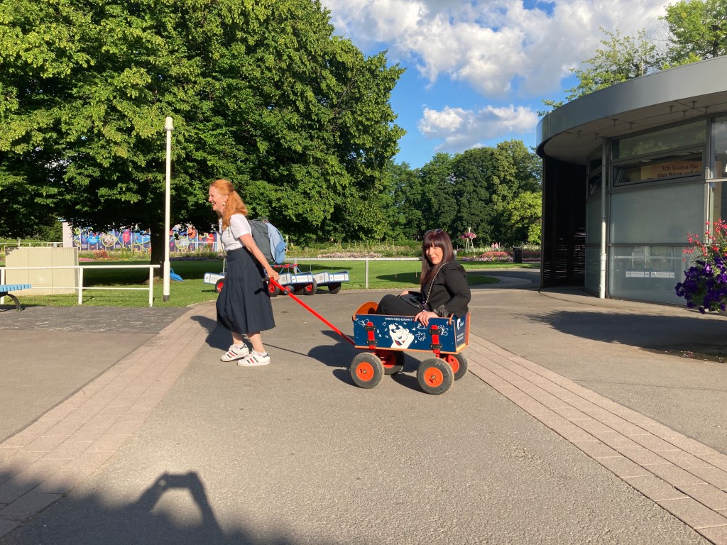 Ist man nicht so gut zu Fuß, gibt es im Mobilitätspavillon am Haupteingang verschiedene Gefährte auszuleihen, unter anderem natürlich Bollerwagen 😉. Haben wir selbstverständlich auch mal ausprobiert. Aber nur ein kleines Stück. 😅😉