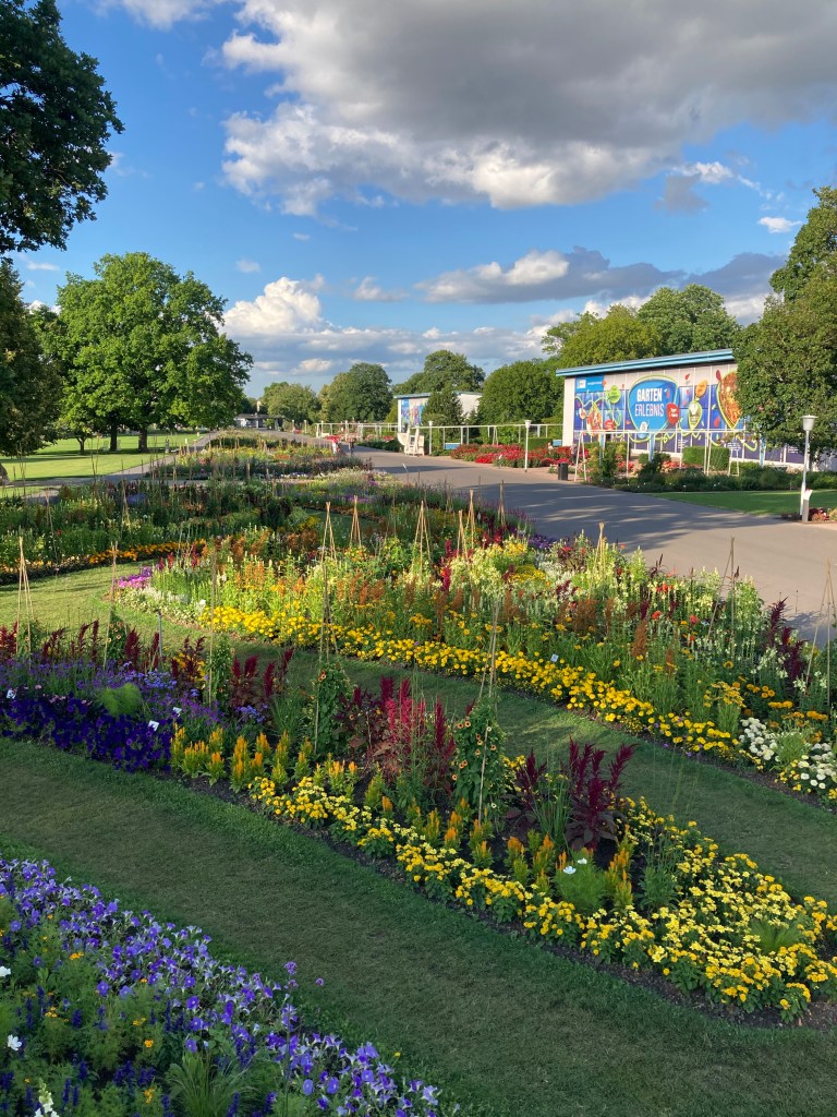 Sommerzeit ist schneller. Obwohl die Tage länger sind, ist der Sommer zu kurz für all die schönen Sachen, die man machen möchte. Zuhause bleibt bei mir vieles liegen, weil es mich nach draußen zieht. Die Sonne, der Abendhimmel, die Blumen, die Musik, alle was Sommerzeit ausmacht. Neulich war ich nach der Arbeit mit meiner lieben Kollegin verabredet, für einen abendlichen Bummel durch den EgaPark. Ein bisschen Arbeit war es zwar dennoch, denn wir wollten gemeinsam für einen Beitrag schöne Eindrücke sammeln. Die letzten Tage hätten wir auch von oben tolle Eindrücke bekommen können, denn Theo der Zeppelin war in der Stadt, äh über der Stadt unterwegs. Aber das haben wir mal anderen überlassen. 😉