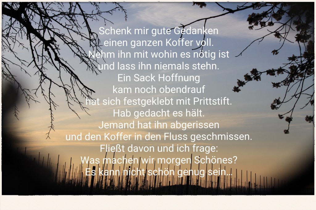 Es ist kompliziert – keine tröstenden Worte auf Lager. Diesmal nicht. Ich bin traurig und auch wütend, aber die Fragen nach dem WARUM stellen sich schon lange nicht mehr. Ich werde nicht müde werden, Dir Mut zu machen. Es kann immer etwas passieren – und so ein Mist – auch bei DIR.