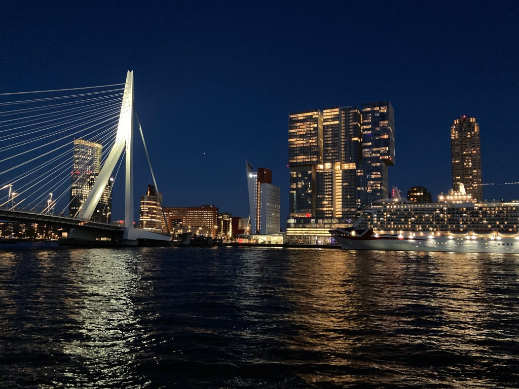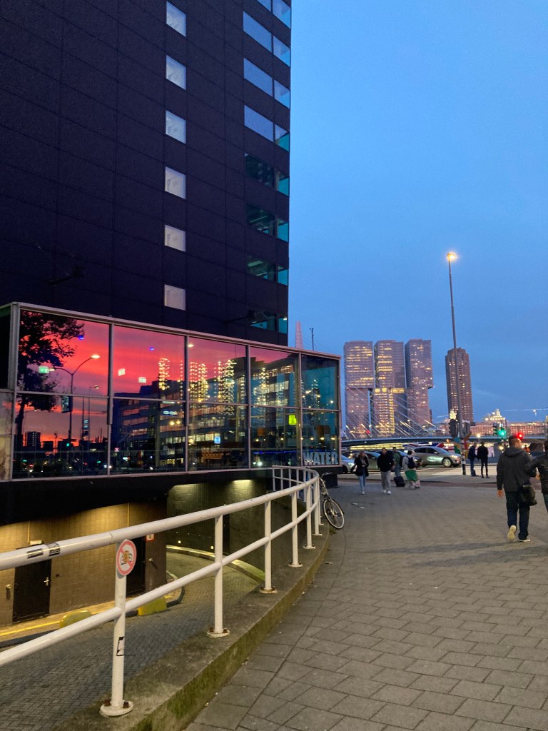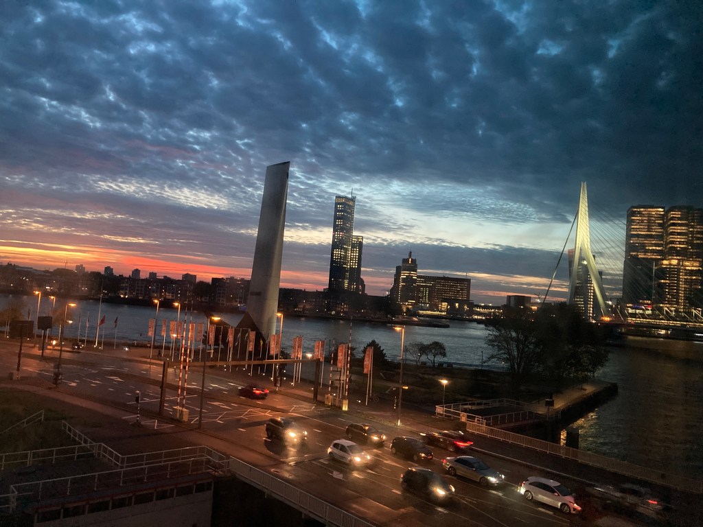 Unser Ausblick aus dem Hotelzimmer, wir hatten die waterfront Seite, war übrigens grandios dank der vielfältigen Lichtersilhouette nachts und dem einmalig schönen Sonnenaufgangswetter. Danke Rotterdam für die schöne Zeit bei dir. 💛
