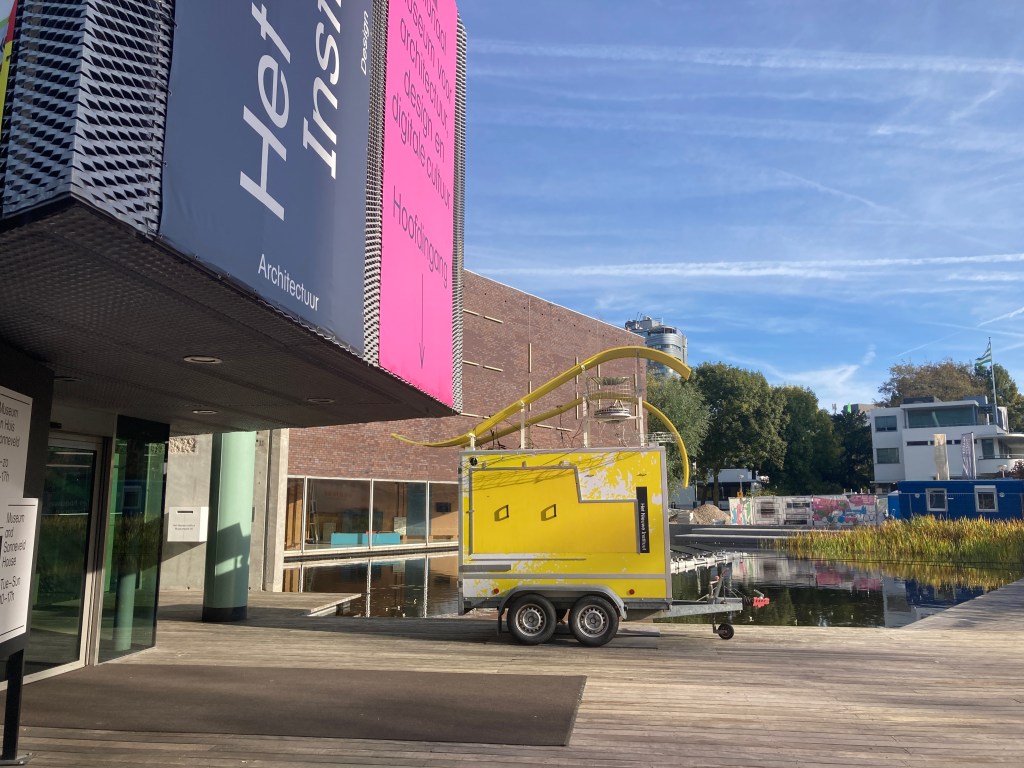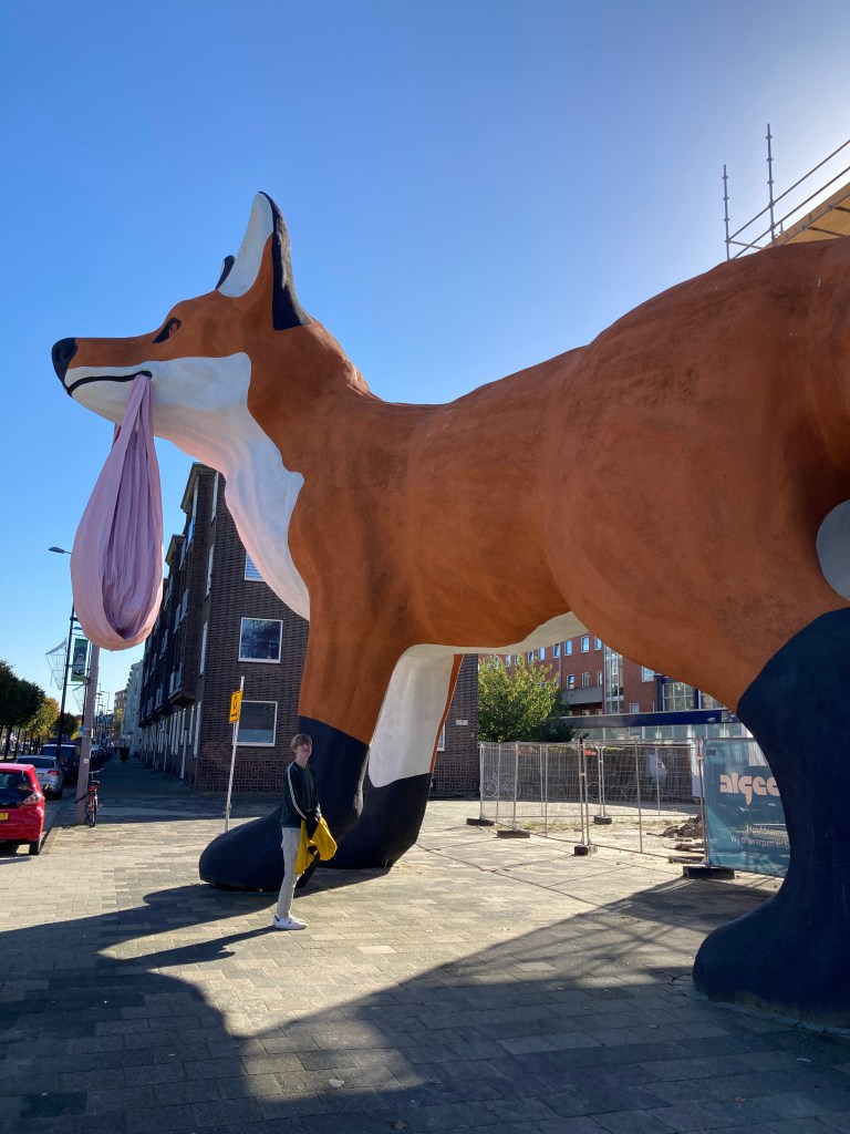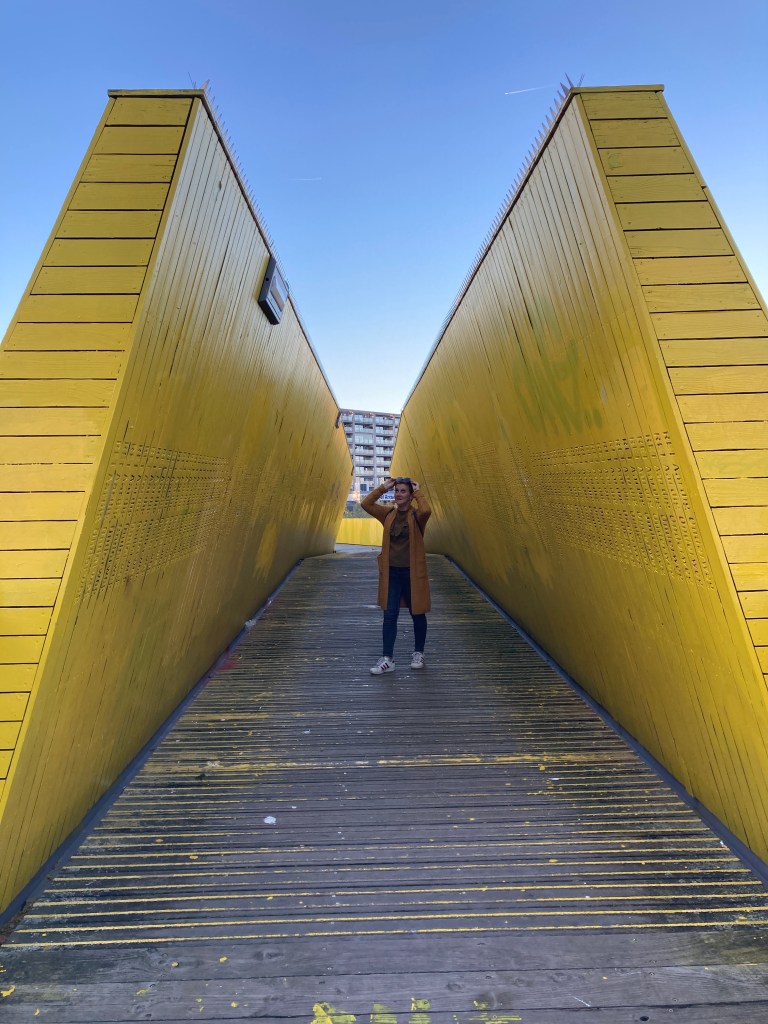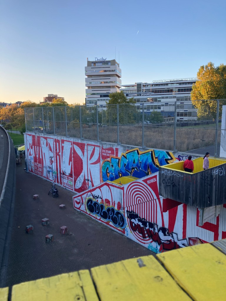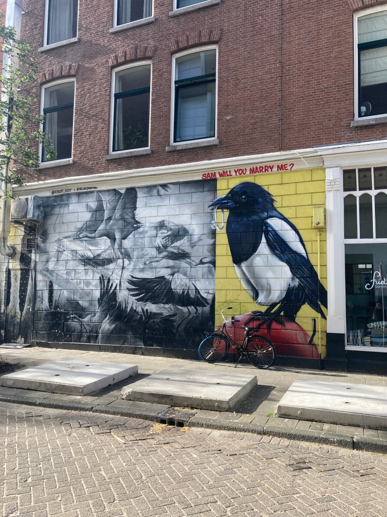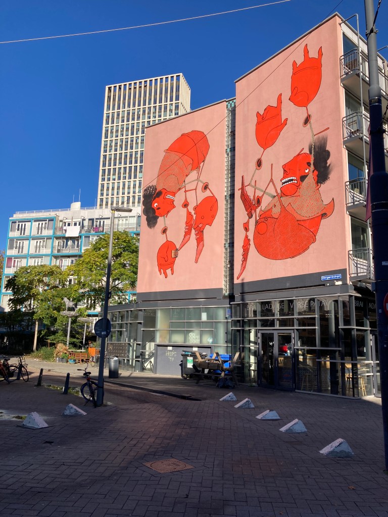 Zwischendurch dachte ich, der Artikel könnte auch heißen „Kathrin sieht gelb“ . 😅 Es zieht sich kein roter Faden durch die Stadt, sondern ein gelber. Habe nur nicht so wirklich rausgefunden warum. Klar, Gelb ist eine Signalfarbe und passt deshalb gut zu Wassertaxis und Wasserbussen, Bojen und Ampeldrückern. Warum aber die Kubushäuser und der Luchtsingel in gelb angestrichen wurden, lässt sich für mich nur mit dem Trendsettertum der Rotterdamer beantworten. Zudem sehe ich natürlich auch jeden gelb angezogenen Menschen und auch sonstige gelbe Details unterwegs, die dann zu einer kleinen fotografischen Gelbserie werden. Auf einem ungeplanten spontanen Ausflug zum Museumspark, wo man übrigens auch wieder Architektur sehr spannend umgesetzt hat – man nennt das verspiegelte Kunstdepot liebevoll „Suppenschüssel“, haben wir den zufällig gewählten Rückweg durch die Witte de Withstraat genommen. Und befanden uns ohne es zu wissen mitten im Kunstszeneviertel Rotterdams. Kneipe an Kneipe, viele Wandmalereien und kleine und größere Ateliers und Museen. Schön!